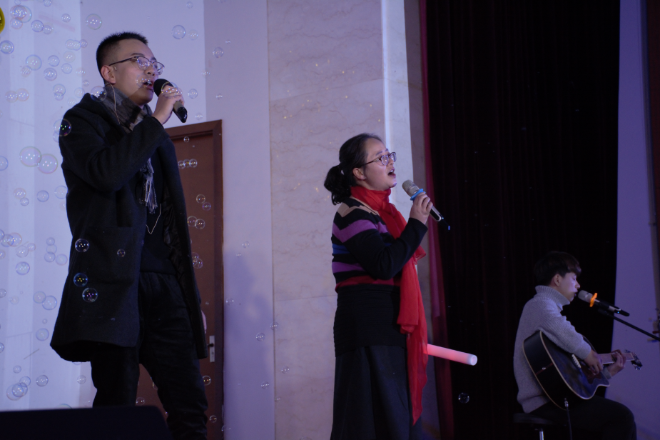 继续教育学院张婧妍老师俏皮可爱的一曲《别找我麻烦》,91社区 王惠琼老师与同学们共同演绎的《成都》,师生同台,师生同乐,不仅让大家陶醉其中,而且表现出浓浓的师生情。