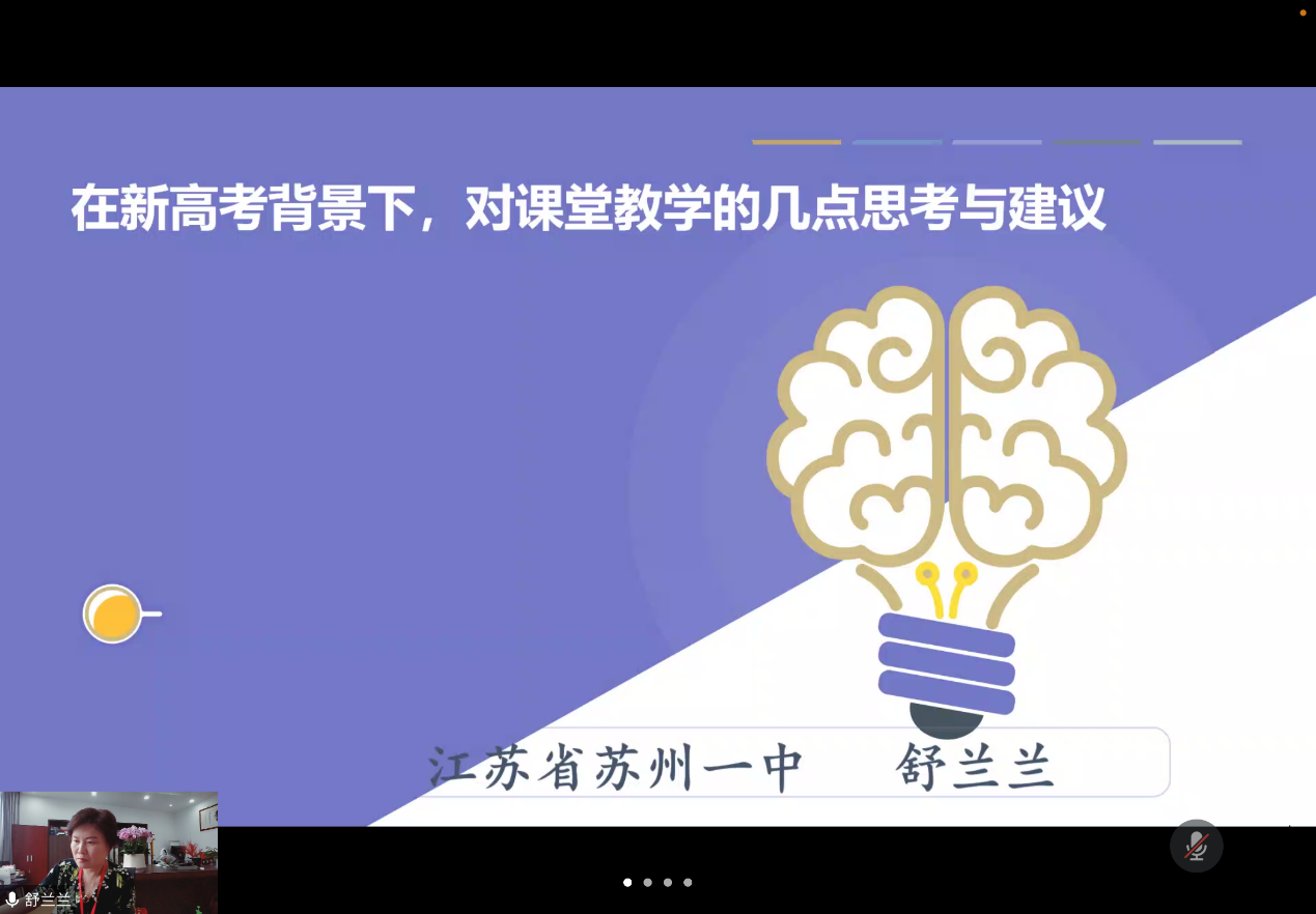 为做好2018级思政师范生的教育实习工作,提高思想政治教育专业学生的教学能力,增进学生对教师职业的了解与规划,2021年9月8日上午,学院邀请江苏省政治特级教师、正高级教师、苏州市新草桥中学校长舒兰兰老师在腾讯会议开展了题为“新高考背景下对课堂教学的几点思考与建议”的线上讲座。本次讲座由思政教研室主任王一成老师主持,2018级、2019级全体思想政治教育专业的同学及其他校内外师生共同参与了本次讲座。