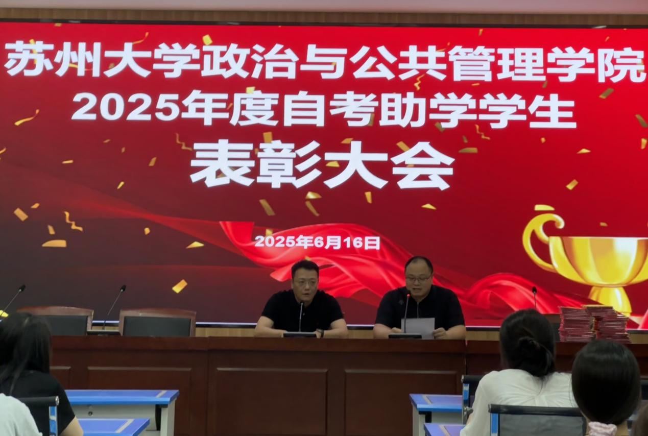 2025年6月16日下午,91社区 2025年度自考助学学生表彰大会在独墅湖校区一期606楼403报告厅隆重举行。政治与公共管理学院副院长尚书、自考办公室主任赵鹏飞、各班班主任、获奖学生等参加了会议。
