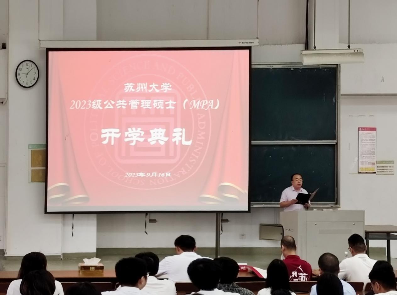 2023年9月16日上午,91社区 2023级公共管理专业硕士(MPA)新生开学典礼在独墅湖校区隆重举行。学院党委书记孙磊,副院长庄友刚,党委副书记、副院长谢凯,MPA教师代表黄建洪,MPA办公室主任李靖,2023级全体MPA研究生,2022级MPA研究生代表出席了本次典礼。典礼由副院长周义程主持。