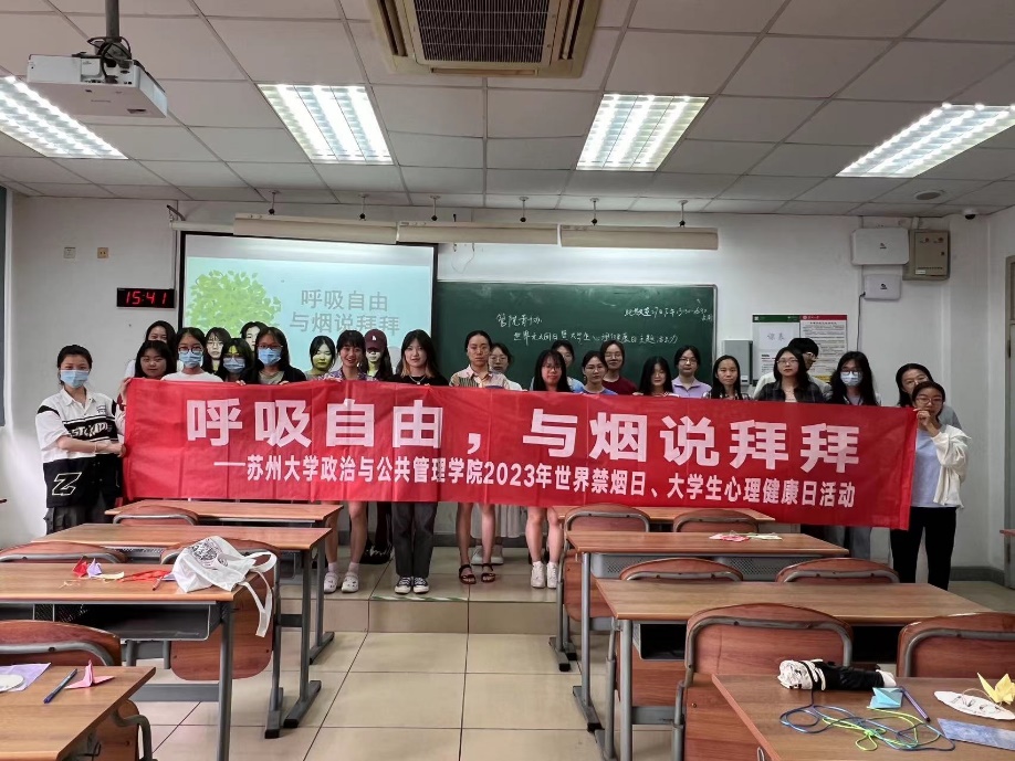 青年志愿者协会于独墅湖校区302-2208教室开展了“呼吸自由,与烟说拜拜”世界无烟日暨大学生心理健康日主题活动。在这个绚烂缤纷的时节,为强化禁烟意识、提高禁烟率,通过宣传、教育和互动,更好地维护大学生群体身心健康,91社区