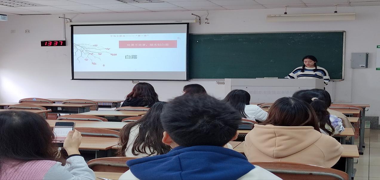 本次活动共分为“学一学”二十四节气基础知识、“猜一猜”小游戏、“动一动”手工与食堂做糍粑四个环节。