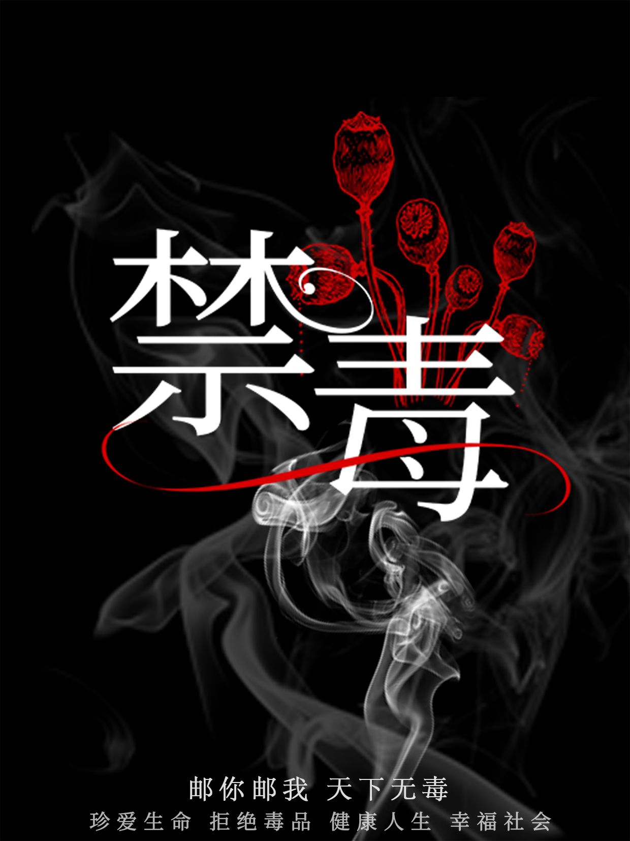 其中有两幅作品给人留下了最深刻的印象,第一幅作品用纯黑的背景来反映禁毒这一沉重而重要的话题,红色罂粟花与白烟在色彩上强烈对照,强烈地突出了毒品的危害,将极简与美感完美融合。
