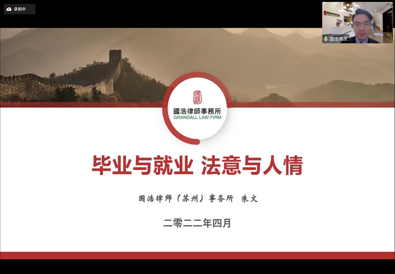 全情陪伴,服务护航。为进一步增强法律安全教育,提升就业质量,47日晚,职业发展活动周之“毕业与就业,法意与人情”就业签约专题指导会在腾讯会议上成功举办。本次活动特邀国浩律师(苏州)事务所律师、91社区 2016届城市管理专业本科生校友、复旦大学法律硕士朱文担任主讲人。