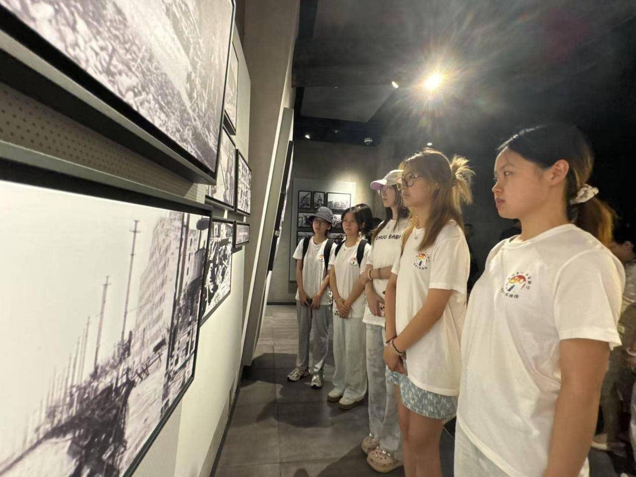 在于若溪同学的带领下,实践团成员带着“牺牲”“自由”“尊严”“希望”等关键词,详细了解了谢晋元率420余名官兵坚守四行仓库四天四夜的壮烈历程。从击退日军十多次进攻到毙伤敌200余人,每一个数字背后都是革命先烈用血肉之躯筑起的防线,每一段故事都彰显着中华民族不屈不挠的抗争精神。