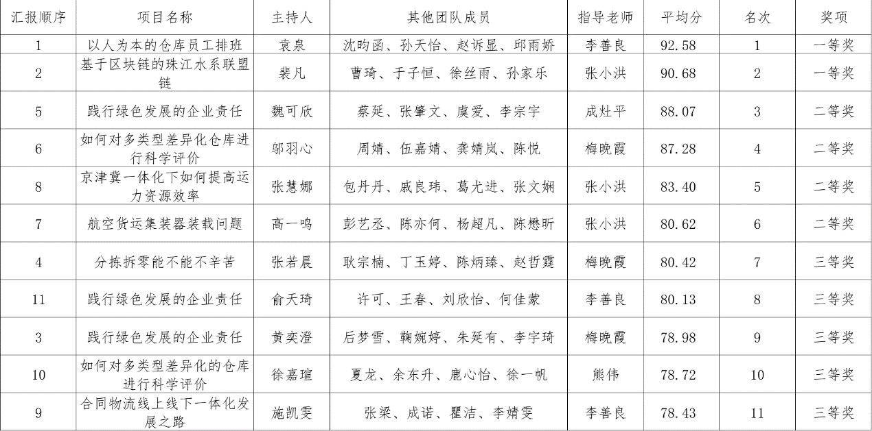 根据物联培字〔2020107号《关于举办“中国外运杯”第七届全国大学生物流设计大赛的通知》和《关于组织参加“中国外运杯”第七届全国大学生物流设计大赛的通知》(教字〔2020213)要求,由学生自由报名组队,经过赛前培训及校内选拔,各队成绩见附件,代表学校参加第七届全国大学生物流设计大赛的名单也已产生,现予以公示。