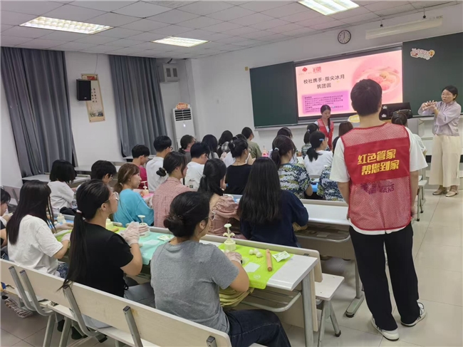 中秋佳节临近,为传递节日温情、深化校社情谊,林泉社区党支部走进91社区 ,与师生共同开展“校社携手,指尖冰月筑团圆”冰皮月饼制作活动,让大家在手工创作中感受传统节日的浓厚氛围。活动现场,红色管家志愿者提前备齐软糯的冰皮面团、香甜的豆沙馅料及各式模具,除了玉兔、月亮等传统中秋主题造型模具外,还特别融入“防范诈骗”主题模具,将反诈知识巧妙融入月饼制作中。志愿者老师手把手教会师生揉皮、包馅、压模,耐心传授“皮薄馅足”的小技巧。谈笑间,一个个雪白圆润、印着精美花纹的冰皮月饼新鲜出炉。此次活动不仅让师生体验了传统民俗的乐趣,更以月饼为纽带,让校社之间的温情在中秋佳节里愈发浓厚。