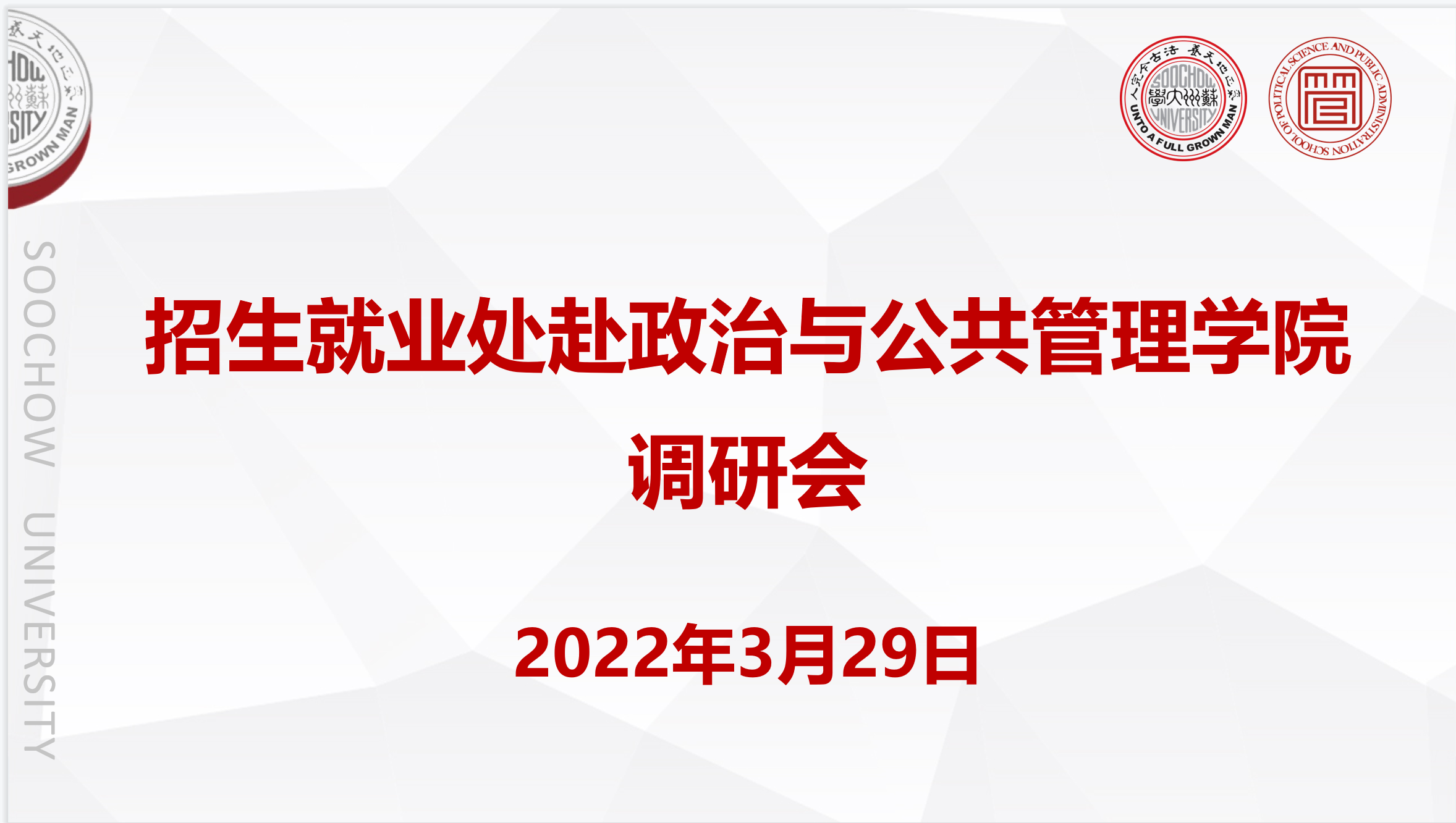 会上,靳葛处长介绍了2021年招生与就业相关情况,充分肯定了学院过去一年在招生就业工作中取得的成绩,并就招生就业工作提出三点希望:第一,贯彻学校宽口径人才培养政策,完善专业建设,推进大类招生;第二,依照招生宣传“一意见三办法”,对标考核指标,执行工作方案;第三,创新招生就业工作方式方法,加大工作力度,提升工作成效。