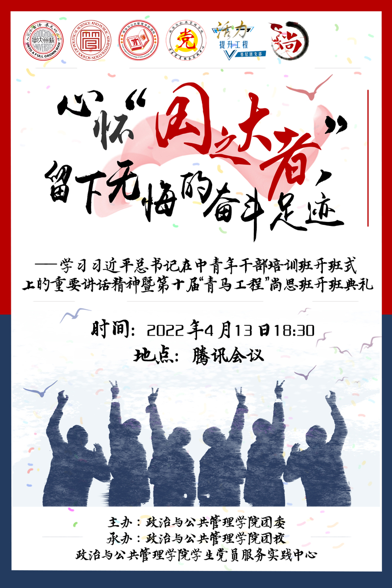 海报|心怀“国之大者”,留下无悔的奋斗足迹——学习习近平总书记在中青年干部培训班开班式上的重要讲话精神暨第十届“青马工程”尚思班开班典礼海报