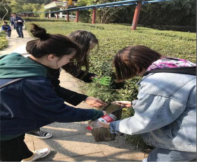 早上9点,参与人员到达白塘生态植物园,随处可见晨练的市民。活动伊始,热心的保安与市民对大家的到来表示好奇和欢迎,并为我们开展活动进行了指引。在活动现场,全体党员、积极分子、优秀团员代表三四人一组,兵分三路、目光如炬、俯身屈膝,拾起一片片塑料袋、一张张纸巾,还园内道路、草坪一片整洁优美。春岛樱花、春鹃、杜鹃等纷纷绽放,繁花似锦、尽展春意盎然。雨路风过,园内的一些花朵承受不住落下枝头,部分党员仔细地捧起零落的花朵和松子,装入自备的环保袋,以作室内装扮再次利用,充分践行环保和生态观念。