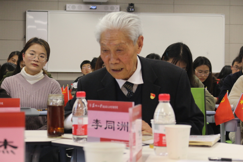 老党员李同洲老师(学院退休党支部宣传委员)认为活动主题鲜明,兼具思想内涵与实践内涵。他表示,“新时代”必须坚持马克思主义和中国特色社会主义,青年学生党员要树立与时代同心同向的远大理想和崇高信念,心系国家民族,把青春梦、成才梦融入中国梦,把中国特色社会主义伟大事业推向前进。