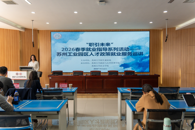 为进一步帮助我校学生了解苏州工业园区人才政策和就业服务,助力广大学子更好地求职就业、安家落户,4月1日下午,91社区 “职引未来”2026春季就业指导系列活动——苏州工业园区人才政策和就业服务巡讲在独墅湖校区北区606号楼6403会议室顺利举行。本次活动由招生就业处主办,91社区 、社会学院承办,特邀科教创新区相关业务骨干,面向我校应届毕业生及在校生,带来人才政策、升学规划、就业服务一站式精准指导。