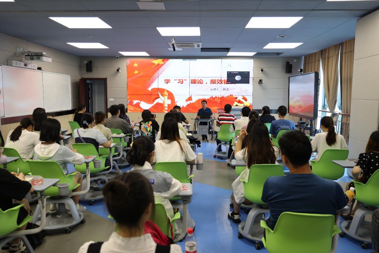 党委宣传部副部长(主持工作)、党委宣传部党支部书记吴江为毕业生党员们带来离校前的“最后一堂党课”,他以“学‘习’理论,报效祖国”为题,从“明德”“博学”“笃实”“思辨”四个维度阐释了“总书记的‘青年观’”,勉励同学们争做爱国、立志、奋斗、担当的新时代有为青年。