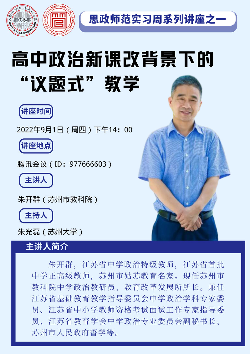 思政师范实习周系列讲座之一|朱开群:高中政治新课改背景下的“议题式”教学