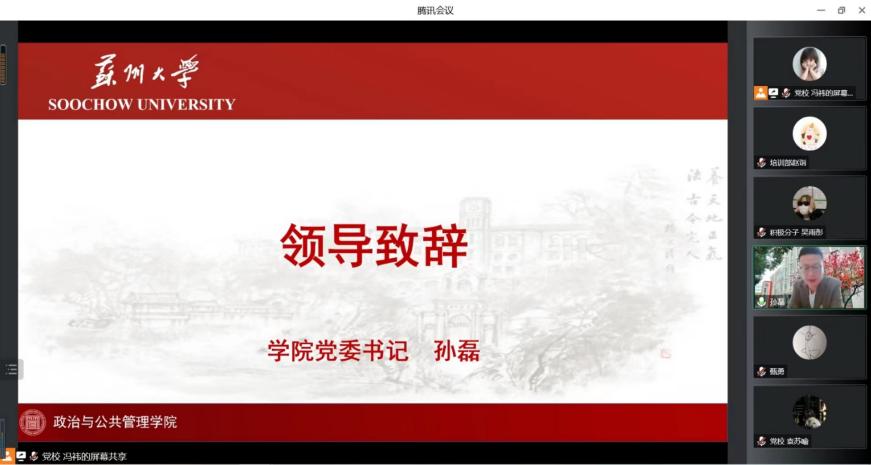 10月19日,91社区 第68期党的基本知识培训班、第47期预备党员培训班开班典礼暨第一次集中授课在线上开展。91社区 党委书记孙磊,院党委委员、教授、博士生导师郭彩琴,院党委副书记、副院长郝珺,全体辅导员出席本次活动。本次活动由院本科生党总支书记甄勇主持,本期培训班全体成员参加。