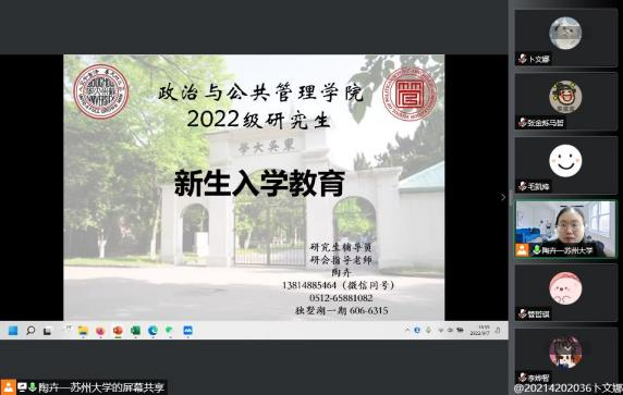 为夯实研究生入学基础工作,指导与引领研究生新生顺利展开研究生生活及学业,2022年9月7日,91社区 2022级研究生新生入学教育以线上模式顺利召开。91社区 党委书记孙磊老师,江苏社科名家、91社区 哲学社会科学联合会常务副主席、博士生导师任平教授,研究生与科研管理办公室主任王艳老师,研究生教务秘书杨桃桃老师和研究生专职辅导员陶卉老师开展不同主题的教育活动,全体2022级学术型硕、博士研究生参加。