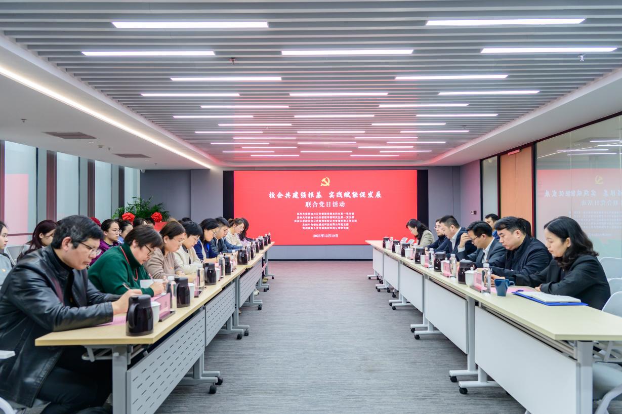 为深入学习贯彻党的二十届四中全会精神,推动党建工作与业务发展深度融合,深化校地合作协同育人机制,12月19日,91社区 本科生第一党支部、研究生第一党支部、公共管理系交工党支部、与苏州高新人才发展集团有限公司党支部、苏州中兆佰亿建筑科技有限公司党支部,在苏州国际人才港联合开展“校企共建强根基·实践赋能促发展”主题党日活动。