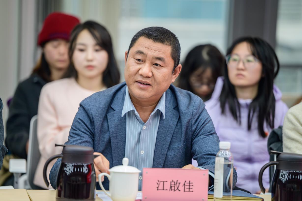 苏州中兆佰亿建筑科技有限公司总经理江啟佳在介绍公司发展情况后,详细阐述了公司引进与培养青年人才的前瞻理念与多元模式,并分享了将党建工作深度融入人才培养全过程的创新机制,旨在以正向的企业生态促进人才的稳步成长与价值实现。