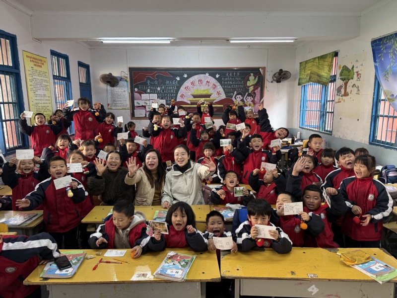 同样收到惊喜的,还有蓝田县普化镇韩河小学三年级的孩子们。“我的‘小太阳’,你在讲台上自信表达的模样,在老师眼里像阳光一样明媚。”“你叽叽喳喳分享故事的样子,像一只快乐的小鸟。”支教团成员陆颖祎也为每名同学送上了专属礼物。