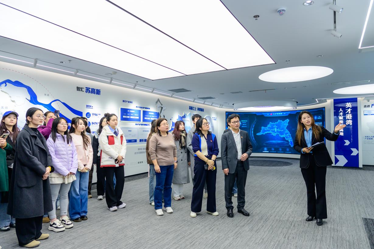 党的二十届四中全会提出,要统筹教育强国、科技强国、人才强国建设,推进教育、科技、人才三位一体发展。活动中,师生党员赴苏州国际人才港实地研学,通过精准人才数据画像、清晰人才战略布局以及现代化人才发展平台所呈现的立体化服务生态,系统了解到苏州以服务生态优化释放人才动能的创新举措,深刻体会到人才服务与产业发展同频共振的实践路径,进一步激发了师生党员们服务发展、贡献才智、共建未来的责任感与奋斗热情。参观后,全体党员移步会议室,共话助力青年人才成长与区域产业升级的实践策略。